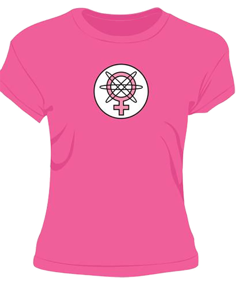 In the comics, her symbol is the female symbol with atomic rings circling it... Then there's a circle with a kind of upside down cross, which is female.. There are three symbols for genders;